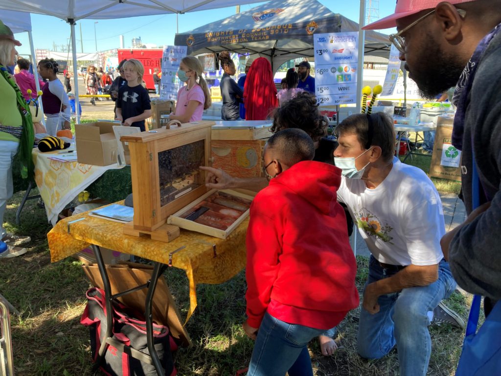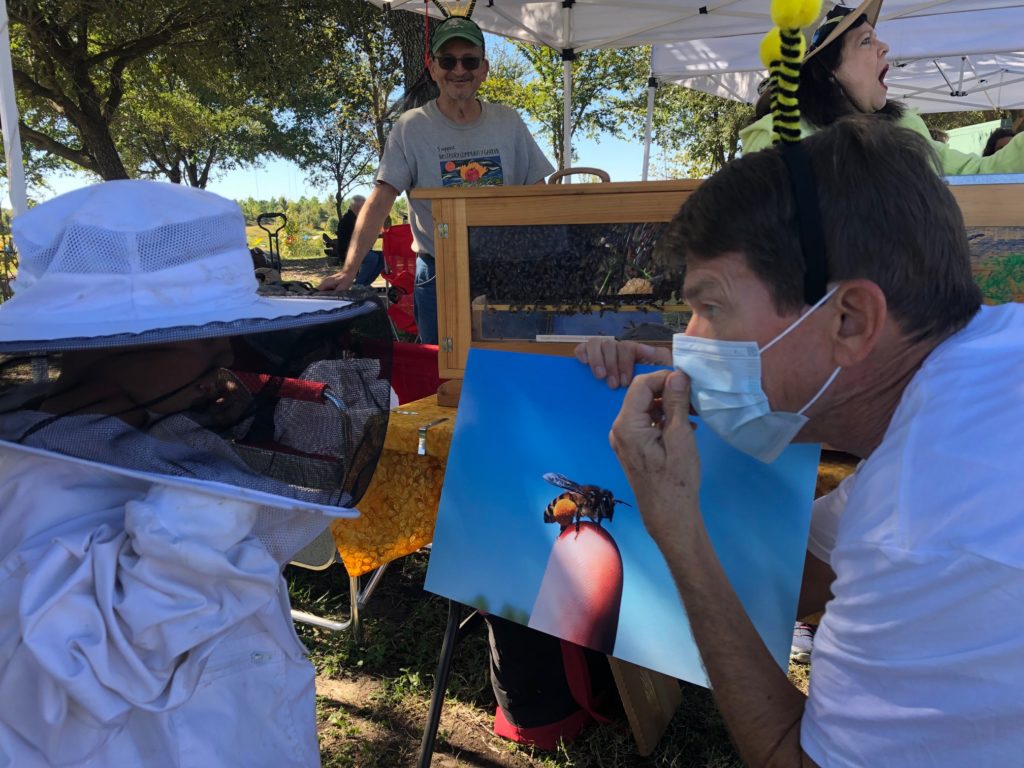WCG’s booth featured our new Apiary. Beekeeper, Steve Ewing, entertained kids and adults all day long with a brood frame and plenty of worker bees in an observation case. Visitors were able to see the bees working through the Plexiglas panels. The bees had air vents but were not able to escape the enclosure. The kids also enjoyed trying on the beekeeper jacket.