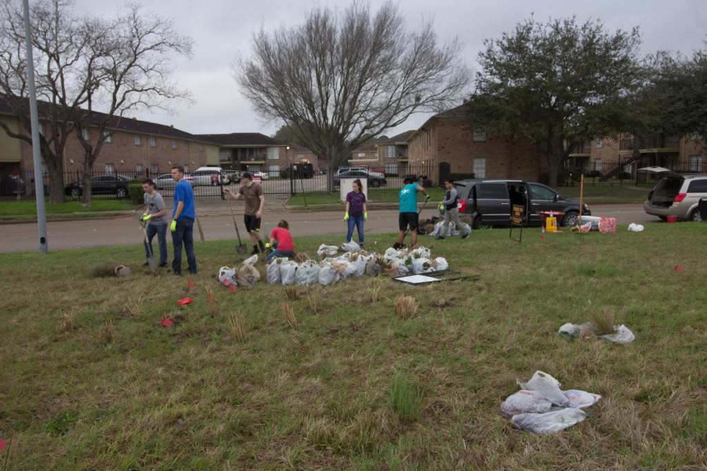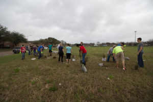 On Saturday, Feb. 24, 2018 the Westbury Pocket Prairie got a big boost to its development when a planting team of Mormon Missionaries, college students spending a year off to do community service and evangelization, met up to plant a large collection of plants they had dug the day before.