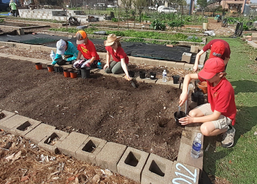 With Steve Goldberg the students created pots for Bluebonnets and cleared an aisle of weeds between two beds.