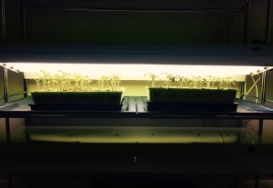 When starting their plants from seed, Roy and Shelly mix up a gallon of liquid fish and kelp fertilizer (SeaPlus from Johnny’s Seed) and soak the potting medium in it. They then place the planting trays beneath grow lights for three weeks until the plants germinate and reach a height of 2 to 3 inches.