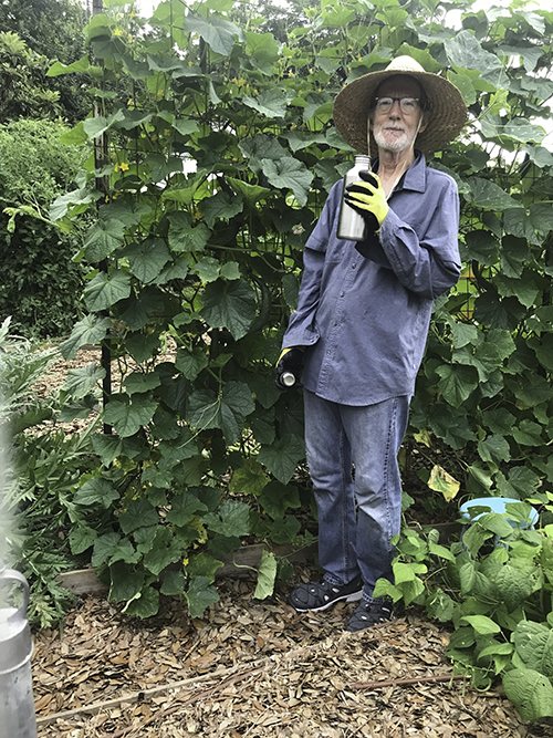 3. I always wear a large, rimmed hat, and protect my skin by wearing a light long sleeve shirt and long pants. Many summer vegetables can irritate the skin and cause a rash.  These include tomatoes, eggplant, okra, squash, bush beans and figs.