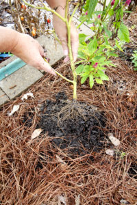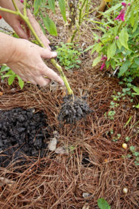 When removing plants, knock off as much soil as you can & keep soil from falling into aisle so you do not excessively deplete the soil in your bed and promote weed growth in the aisles.