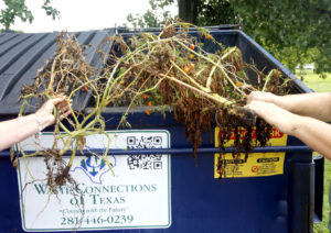 - Dispose of diseased plants, insect infested plants and woody plants into the dumpster and not the compost bins. Ask someone in the compost committee if you are not sure what is safe to compost.