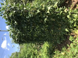 Long beans. Grow on 6’ trellis. Harvest beans when 18” long for best texture. Cut up in fresh salads or stir fry or cook in any way you would green beans. They will produce all summer. This plant will fix nitrogen into the soil and improve the healthy of the soil.