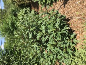 Roselle. or Jamaican sorrel. It forms a bush that is 4 to 5 feet tall and the same width. Harvest leaves and eat fresh in salads or cook in stirfry. Excellent lemony flavor. It will produce all summer.