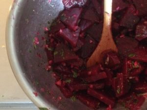 - Once cooled, chop beets as desired and transfer to large mixing bowl.