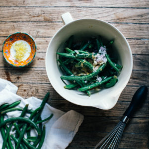 - 1 1/2 lbs green beans, stem ends trimmed