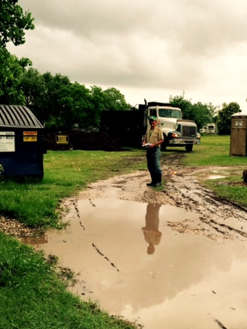 Wayne waited all day in the rain for the mulch delivery.